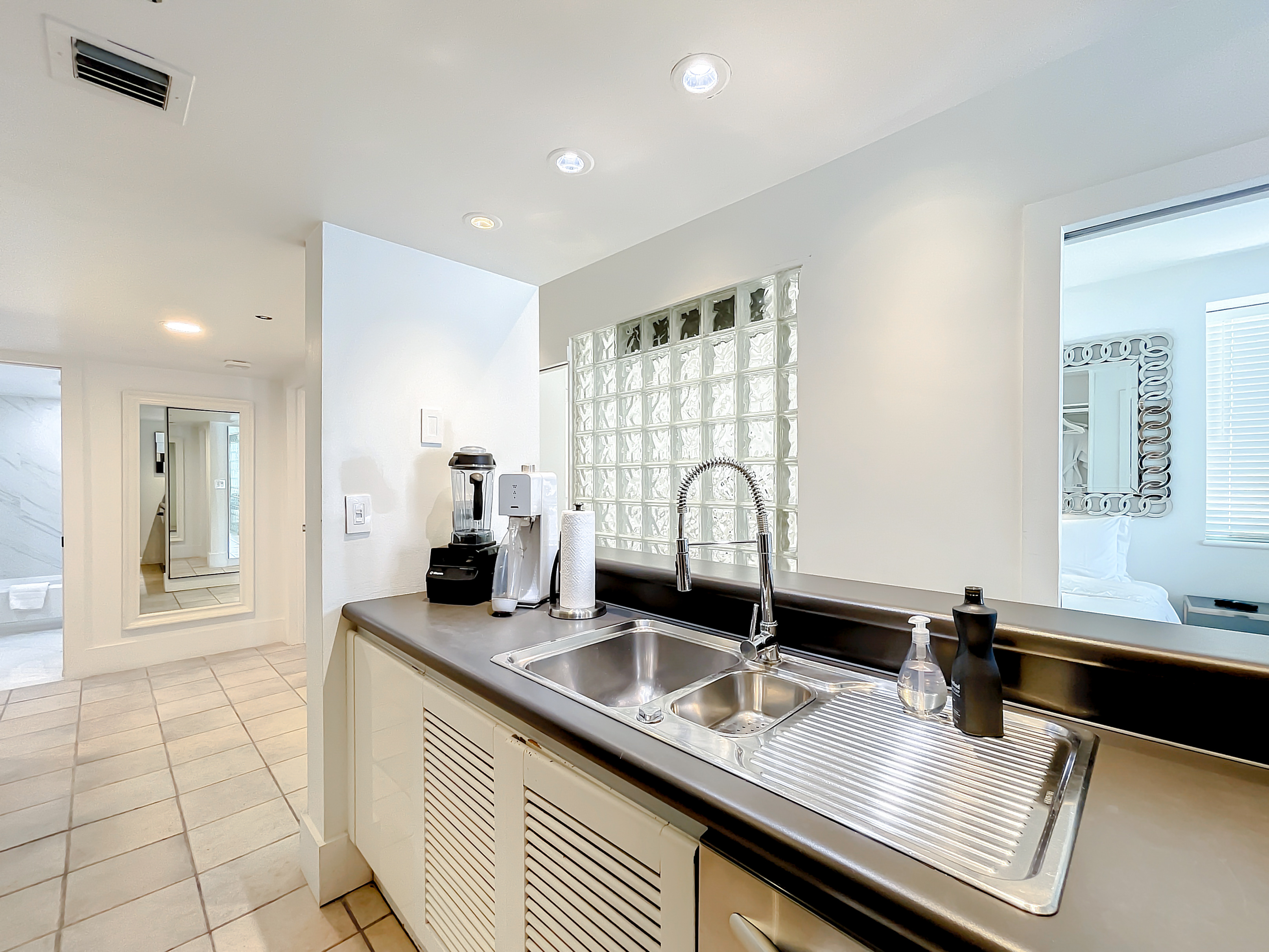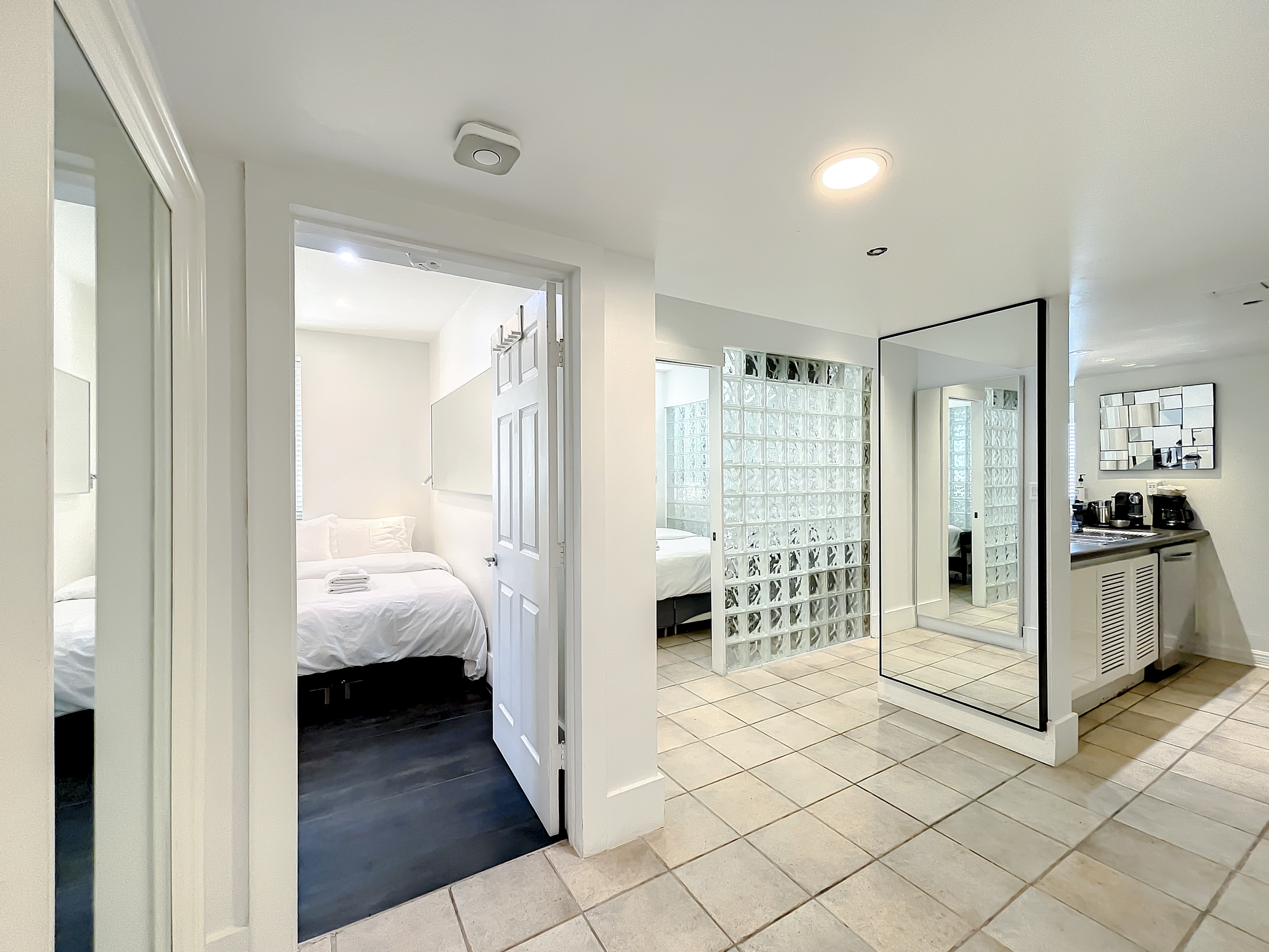 (Bedroom #2 & 3 are smaller-sized bedrooms and feature an Art Deco-designed glass block design for a true bright Miami Beach Art Deco vibe.